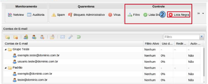 Na guia “Controle”, clique em opção “Lista Negra” (2).