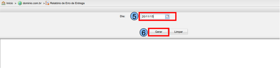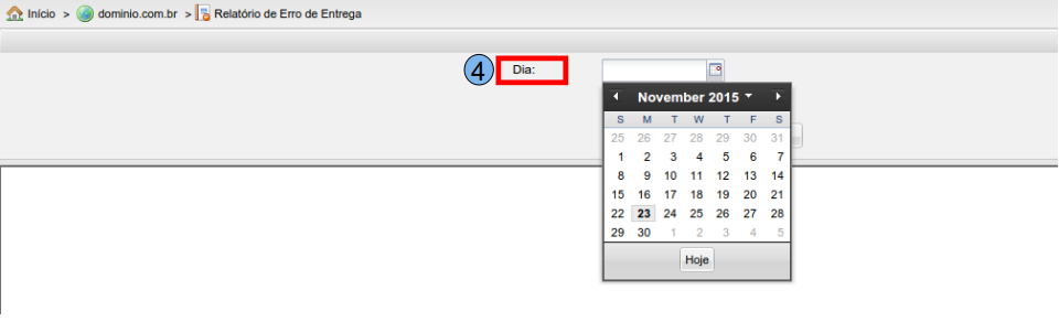 Na opção “Dia” (4), selecione um dia específico para filtrar e visualizar os erros de entrega caso existam.