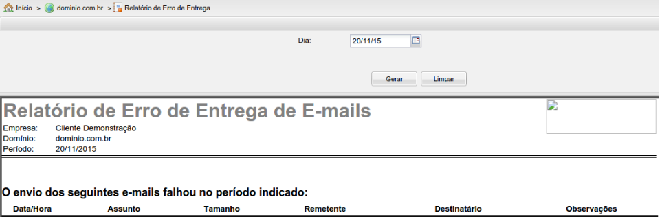 Na tela abaixo será exibido o relatório dos e-mails enviados e que apresentaram algum erro específico, erros que são documentados pelas RFCs.