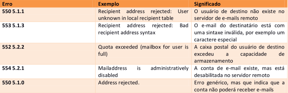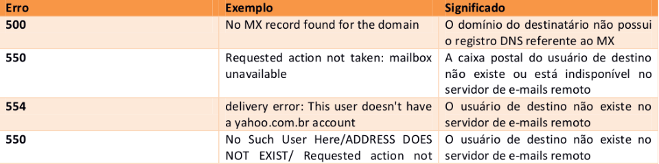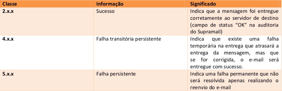 Segue abaixo a tabela resumida contendo o significado dos códigos de status de envio de e-mails: